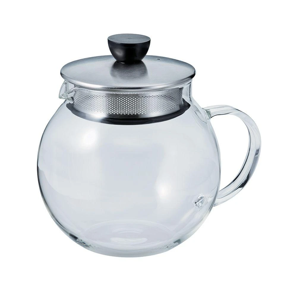 The entry-level Hario Jumping Leaf Teapot takes the fundamentals of specialty tea brewing and makes every step fully observable, from the dosing, to the steeping, to the pouring. With a strainer built into the teapot lid, filtering and serving tea is smoothly integrated into the ritual, making the process of brewing your daily tea an uncomplicated and enjoyable one. With a practical serving capacity of 600ml, the borosilicate glass teapot is both dishwasher and microwave safe.
