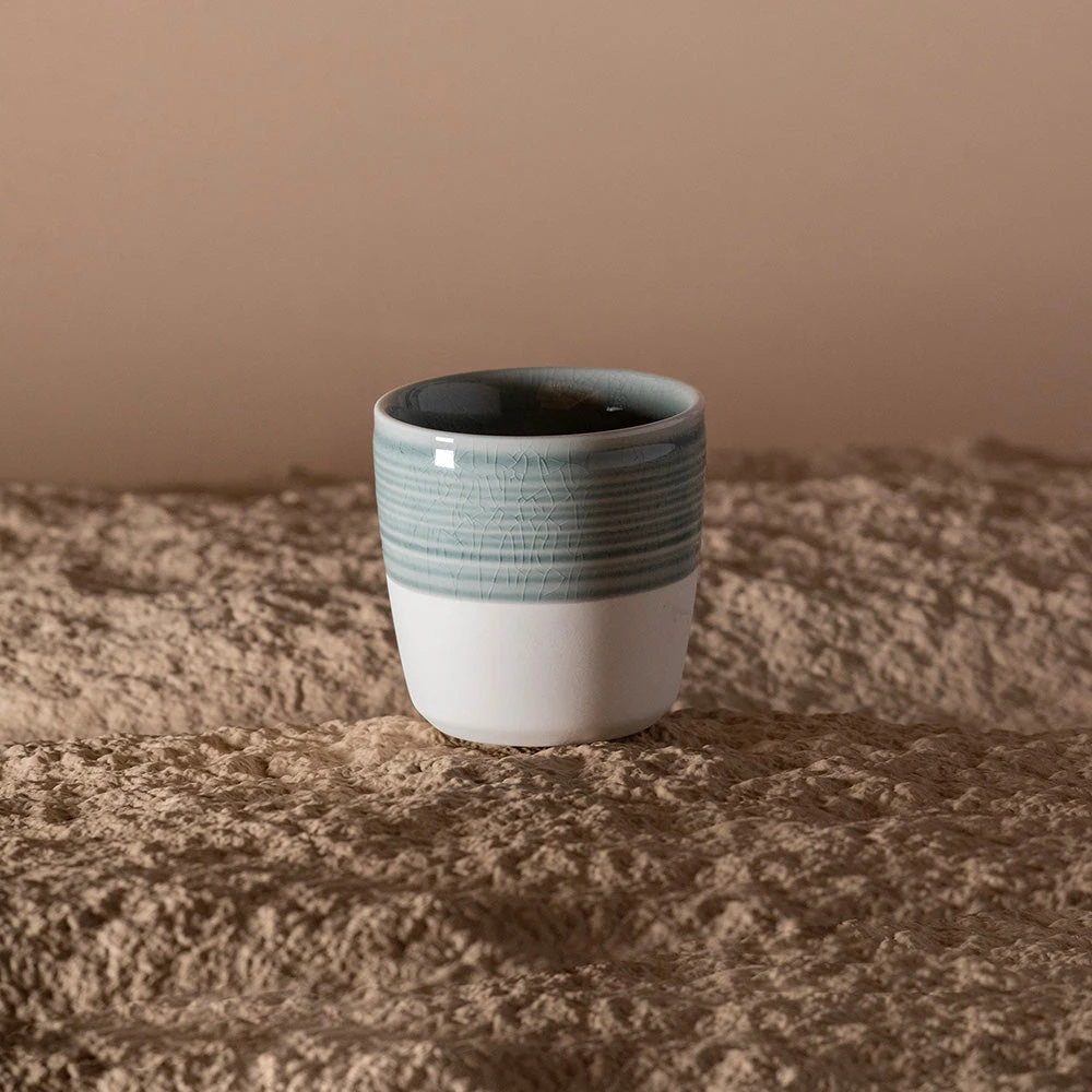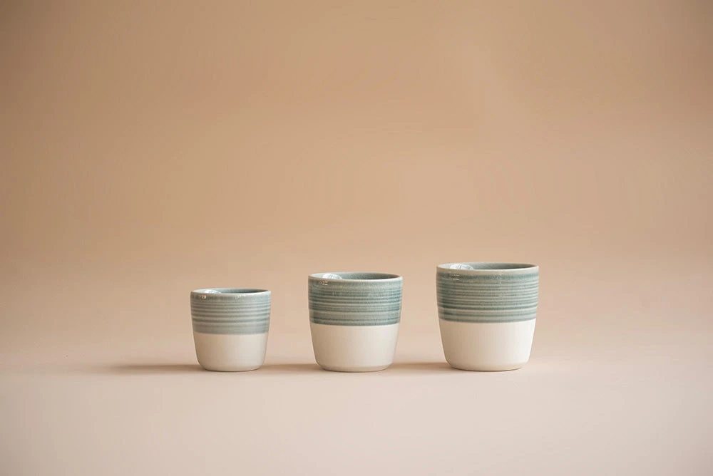 Comes in 200ml, 150ml, and 80ml handle-less cup with no saucer, this contemporary potter created set is given new life with a new look.